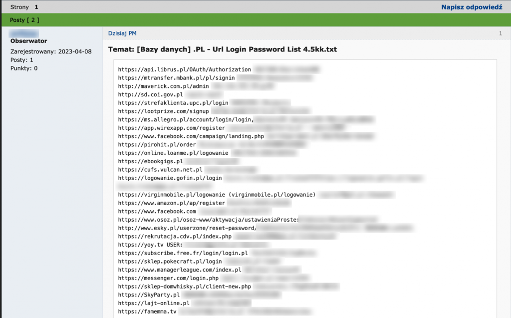 Jak wskazuje autor wpisu: „Niestety trudno oszacować wiek ujawnionych informacji. W bazie nie brakuje haseł zawierających w treści ciąg „2023”, zatem można domniemywać, że przynajmniej część ujawnionych danych jest bardzo aktualna.
